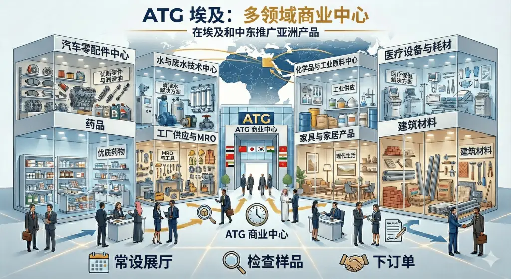 ATG Egypt是一家多元化的商业中心,致力于在埃及和中东地区推广亚洲产品。我们的理念是设立行业专属的常设展厅,进口商可以全年参观、查看样品并下单。