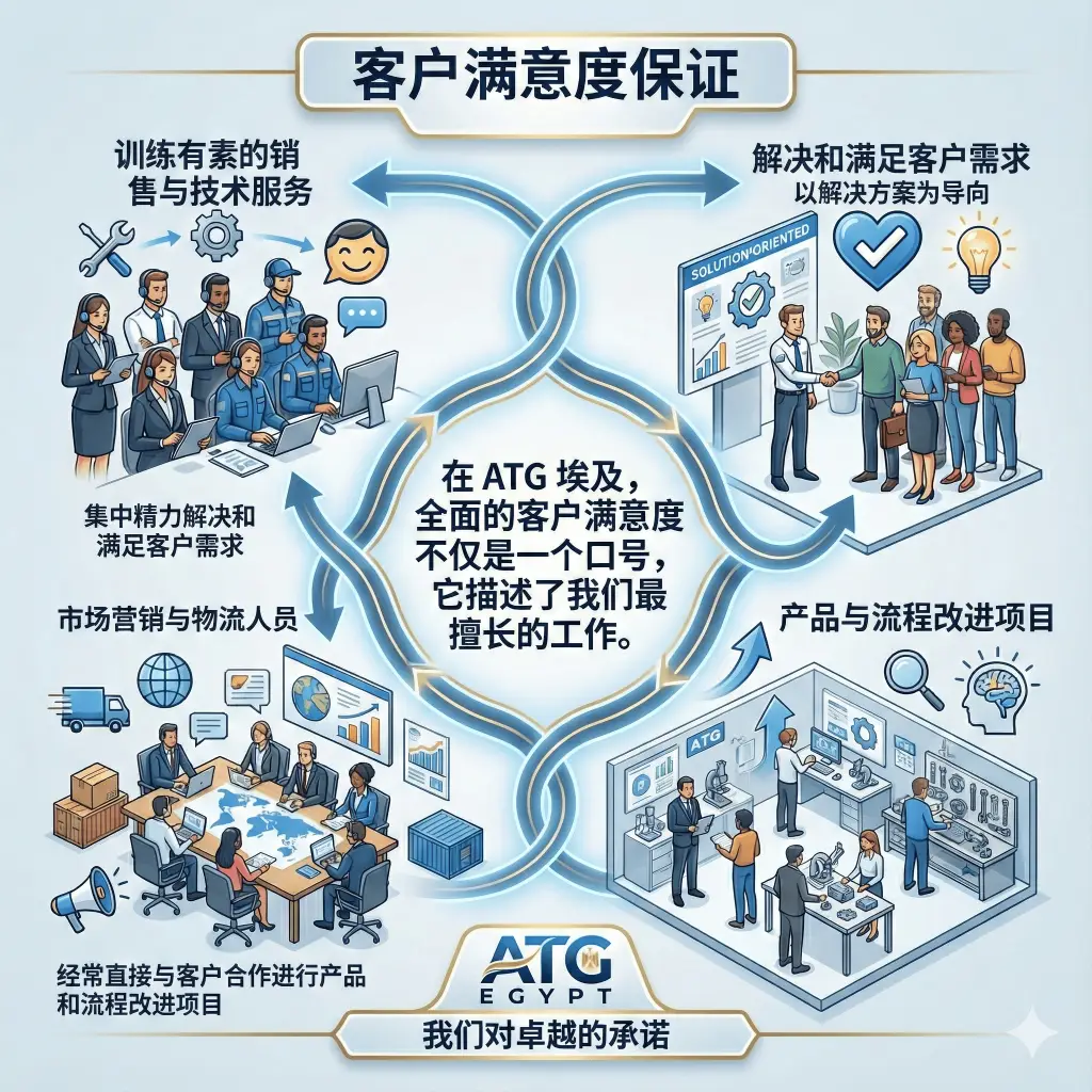 在 ATG EGYPT,客户完全满意不仅仅是一句口号,更是我们工作的核心所在。 我们训练有素的销售和技术服务人员不仅致力于满足和解决客户需求,我们的市场营销和物流人员也经常与客户直接合作,共同推进产品和流程改进项目。